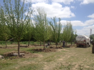 Por ahora-dijo-nos hemos enfocado en rehabilitar el parque Benito Garza Ortegón, no con grandes obras, previendo que durante las inundaciones se pierden, se las lleva el agua, se propone el municipio construir un pulmón para la ciudad al sembrar y regar, 200 árboles entre los que se encuentran maples, sabinos y nogales, primeramente se tuvo que limpiar, posteriormente nivelar y plantar zacate, se han construido canchas de futbol americano, beisbol y futbol soccer, se ha instalado un sistema de riego con la misma agua del Río y restablecido la electricidad.